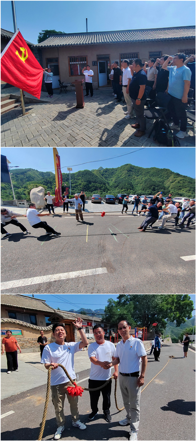 結(jié)構(gòu)所黨支部與顧家臺黨支部開展聯(lián)合黨日活動。顧家臺村支部書記顧錦成同志帶領(lǐng)全體黨員在黨旗下莊嚴宣誓,重溫入黨誓詞。隨后,兩個支部的黨員開展拔河聯(lián)誼活動。