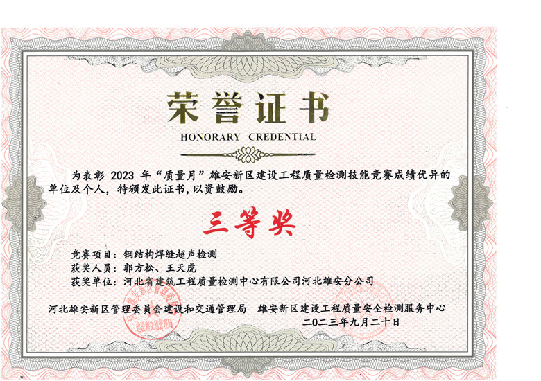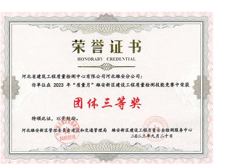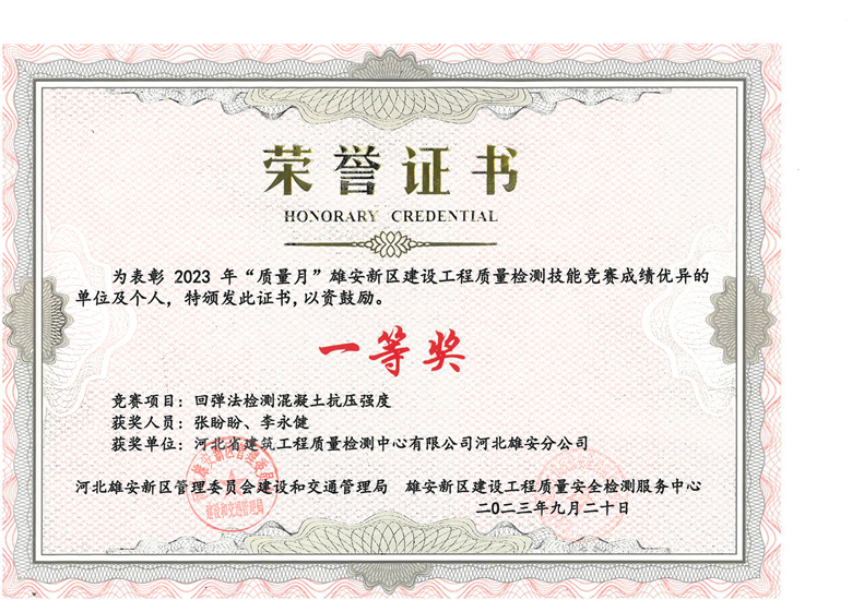 雄安分公司榮獲雄安新區(qū)建設(shè)工程質(zhì)量檢測技能競賽多項獎項