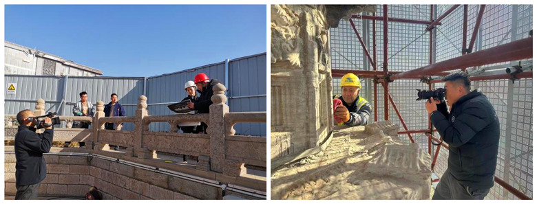 2023年12月8日,趙州陀羅尼經(jīng)幢保護(hù)工程施工現(xiàn)場,我公司技術(shù)人員攻堅克難、不畏嚴(yán)寒,依然奮斗在施工崗位。在新搭設(shè)的腳手架上,他們牢記文物保護(hù)方針,采用科學(xué)、合理的技術(shù)手段對石質(zhì)文物表層結(jié)殼、結(jié)膜污染進(jìn)行清理,并依照方案核對塔身各類殘損病害,為后期的修繕工作做足準(zhǔn)備。