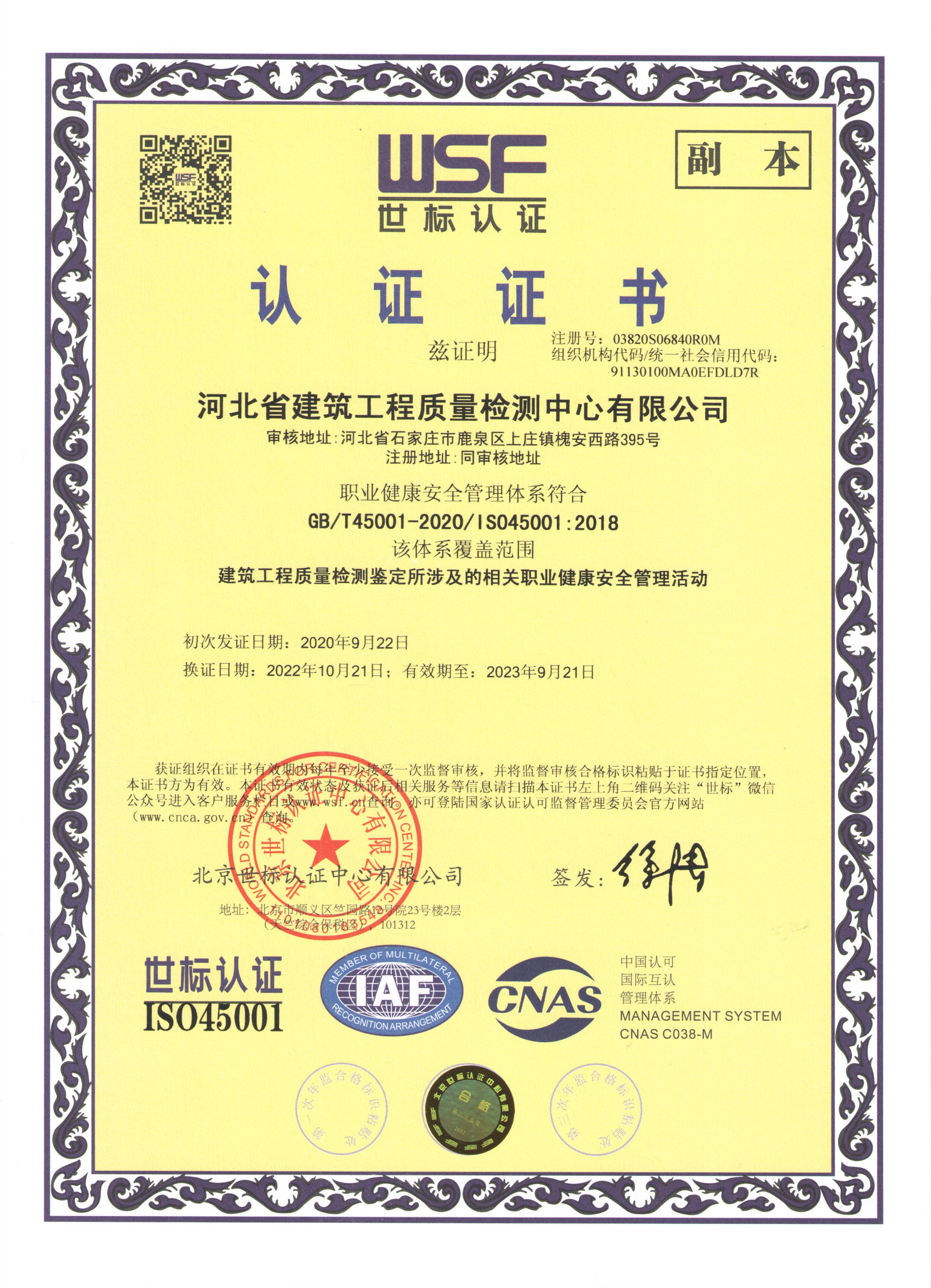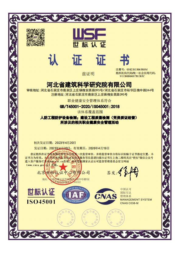 河北省建筑科學(xué)研究院有限公司認(rèn)證證書2
