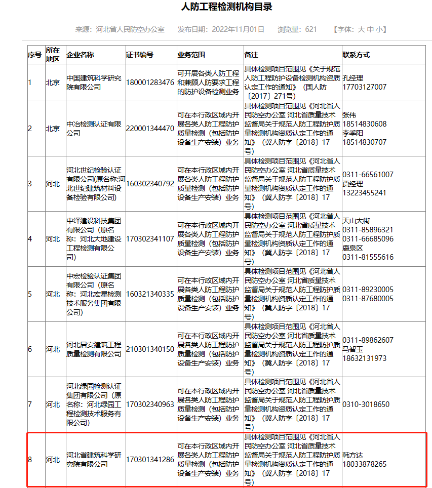 河北省建筑科學(xué)研究院有限公司人防工程檢測機(jī)構(gòu)證明